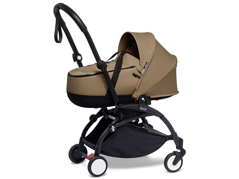 世界初3つ折りベビーカー「YOYO(ヨーヨー)」にワンクリックで取り付けできるバシネット(キャリーコット)。本体側面の持ち手を使えば、子供が寝たときも室内への移動がスムーズ。通気性の良い二重構造のマットレスを使用。カラーは9色。