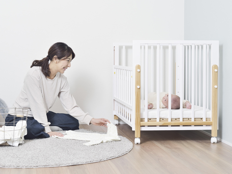 高さを調節できて抱きおろしが楽! インテリアに馴染むシンプル可愛いベビーベッド