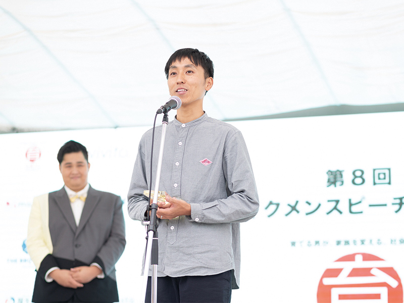 メイン画像:イクメンスピーチ甲子園優勝者となった伊藤さん。