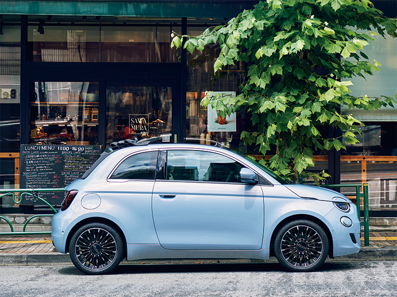 「ルパンのクルマがEVになった!」と、登場から大注目された500e。クーペもあるけど、デートなら断然、EVで唯一となるオープンカーのカブリオレ。パタパタとカーテンのようなルーフは電動で、開ければ広い空に手がのばせる。