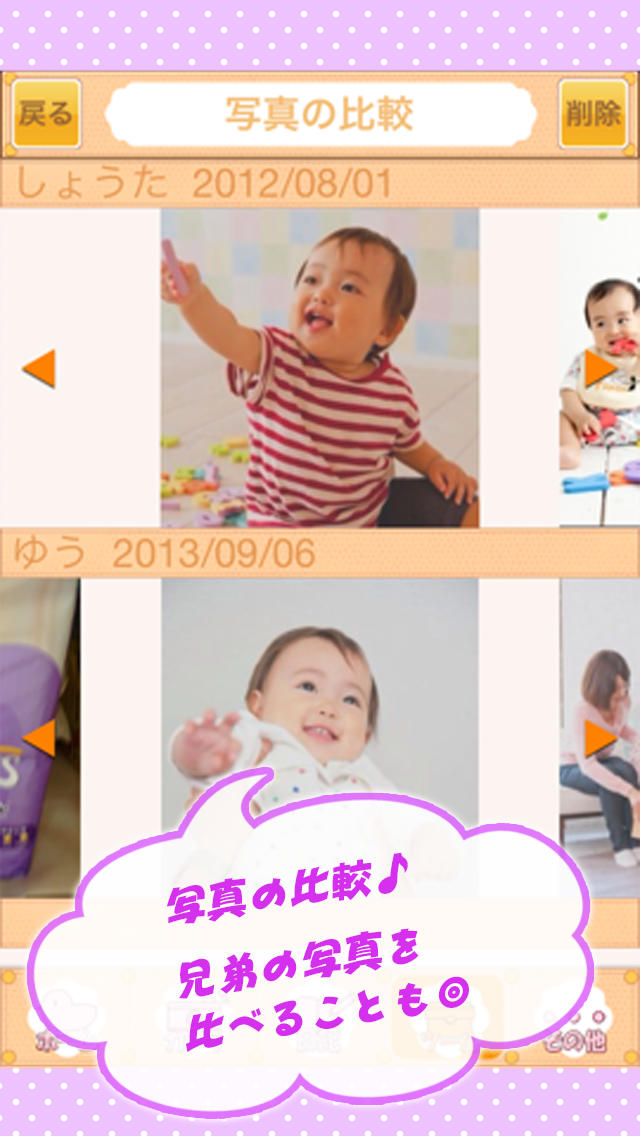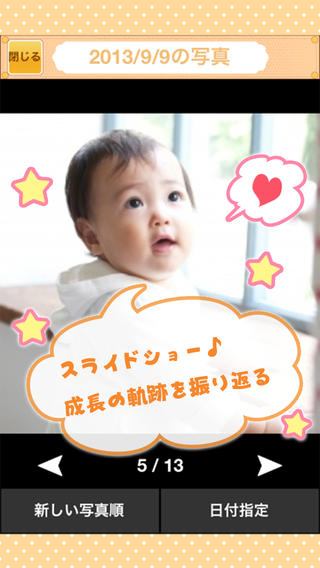 子供の成長・育児記録、思い出を手軽に残すことができるiPhone対応アプリ。カレンダーの日付をタップするだけで写真を保存できるなど、簡単操作で誰でも手軽に利用できるのが魅力。