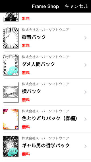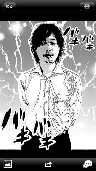 撮影した写真をどんなものでも漫画化する面白カメラ。人物、風景なんでも漫画風になる。用意されているフレームは20種類以上!