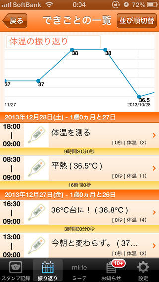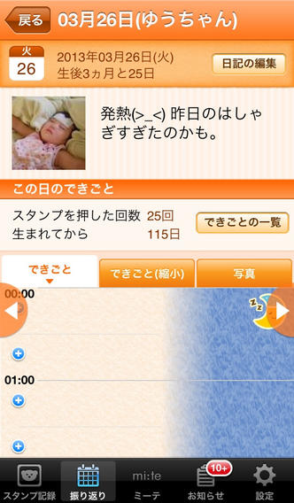 0歳から6歳までの生活記録と日記を、無料で電子書籍化できるというすぐれものアプリ。授乳やミルク、おむつ替え、睡眠などをグラフ化でき、予防接種のスケジュール確認や病気の管理などにも使える。