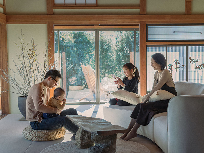 メイン画像:リビングや廊下は全てフラットな畳。祖父母が一緒でも安心