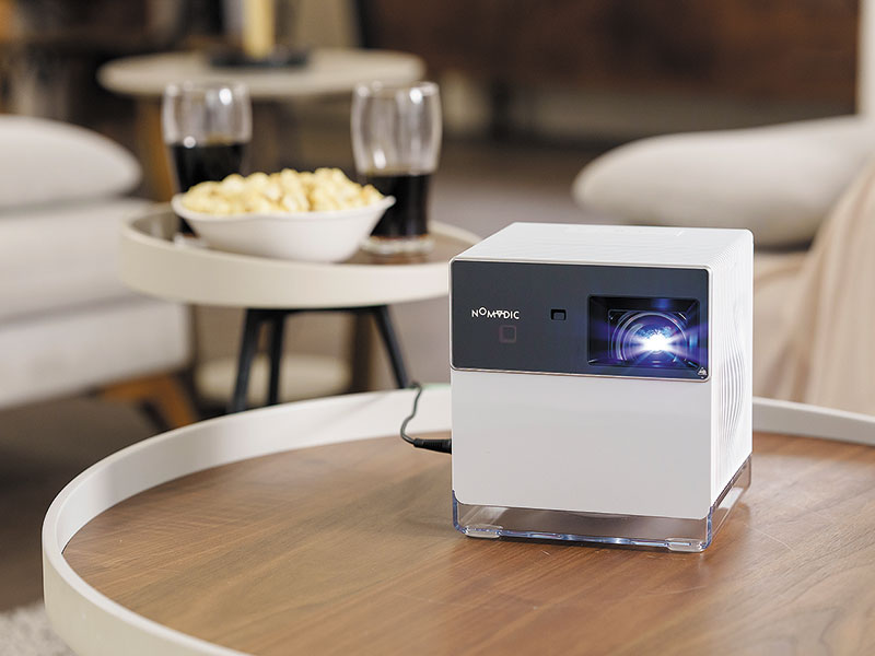 4K解像度と2300ANSIル―メンの明るさを誇る高性能プロジェクター。明るい環境内でもはっきりとした映像を楽しむことができ、一般的なLEDプロジェクターに比べて鮮やかでリアルな視覚体験を提供している。またNOMVDIC独自のAI画像最適化技術の採用によって、自動垂直・水平台形補正、オートフォーカス機能を備えており、さまざまな場所で映像を投影できる。