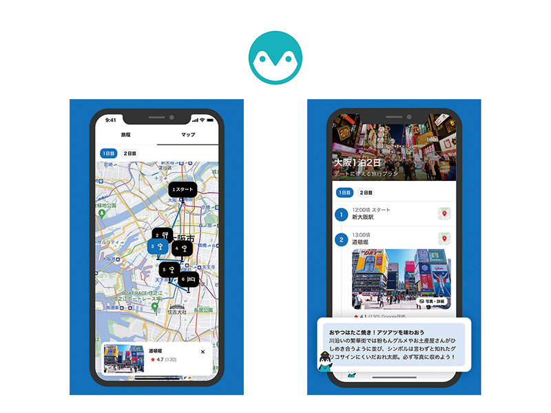 旅行プランや観光スポット選びにかかる手間を解決するサポートアプリ。目的地と日程、人数の入力だけで、ホテル・レストランを含む好みや条件を満たした効率的な旅行プランを1分足らずで作成。「子連れ旅行に最適」「親子で楽しめる」といったおすすめの理由やスポット同士の位置関係がひと目で分かるマップ機能も搭載。