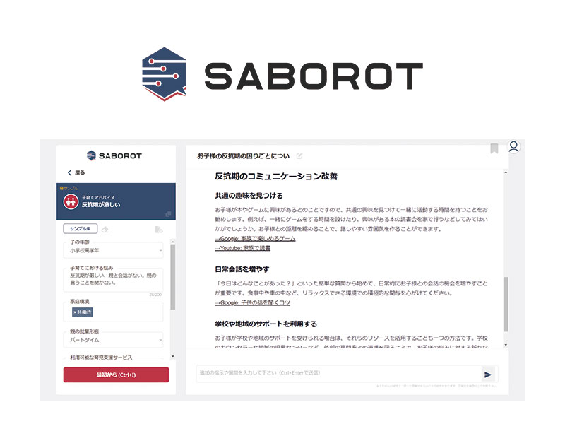 6. 「専門知識が無くてもOK!AIにチャットで旅行先を相談」SABOROT(PC版)