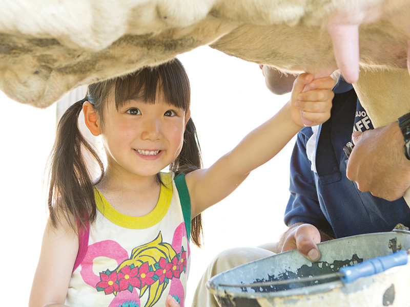広大な牧場で乳搾りや乗馬体験