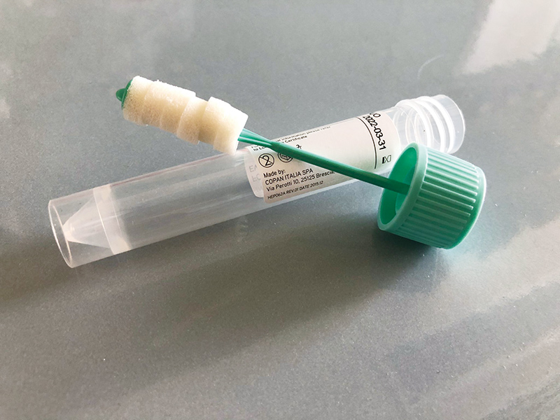 “ペロペロキャンディ”タイプのPCR検査キット。実際は白い棒状のものだが、「キャンディをなめるようにやってごらん」と説明することで、子供が検査を嫌がりにくくなる。 ©Microbiologhe Università degli Studi di Milano