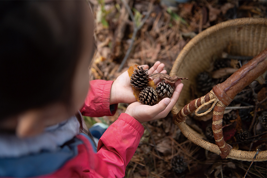 食事は自家農園で育てる無農薬野菜を中心に、旬の食材を生かしたイタリア料理をフルコースで。時には猟師が近くの山で獲ったジビエ料理も並ぶという。暖かい季節には農園で収穫をしたり、庭でハーブを摘んだり、寒い季節は森での材料探しから始まる焚火体験をしたり、ここでしかできないような貴重な体験が楽しめる。自然や命の大切さを感じられる「暮らしの旅」を親子でじっくり味わってみては。