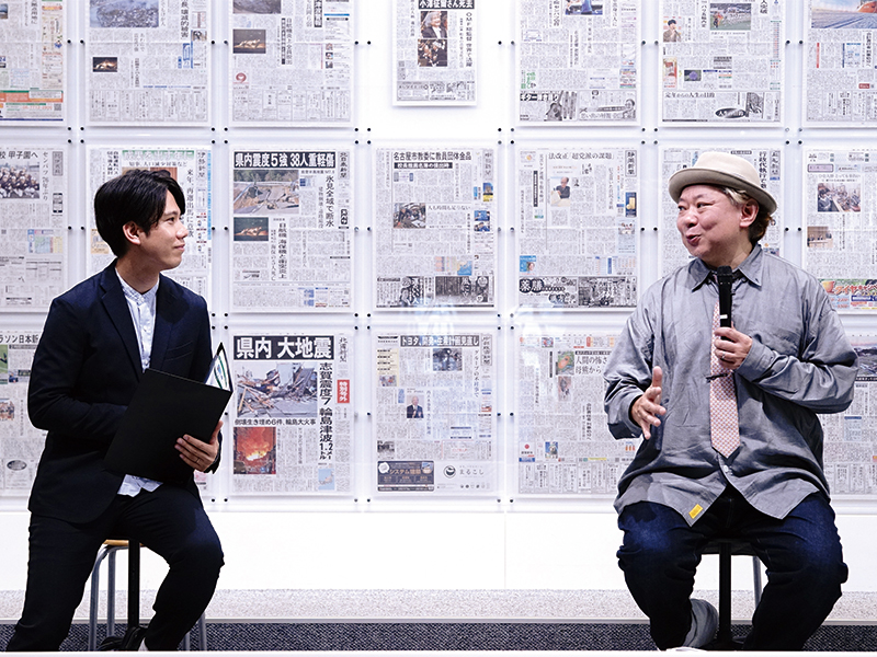 鈴木おさむさんをお迎えし、横浜市のニュースパーク(日本新聞博物館)でトークイベントを開催。1 年間の育児休業中のエピソードや、仕事と子育てを両立する工夫をお聞きした。聞き手は、父親向けライフシフト情報誌「FQ JAPAN」の林憂平編集長。