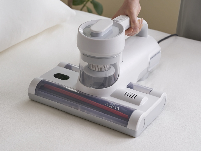 日本生まれの家電ブランド「AQUA(アクア)」のふとんクリーナーは、とことん「清潔さ」にこだわって開発されたという。2.0kgと軽量で手軽にお手入れしやすいスタンダードモデルと、ダブルブラシを搭載し、より細かい毛の掻き出しに強いハイエンドモデルの2タイプある。双方に共通するこだわりの清潔ポイントは3つ。