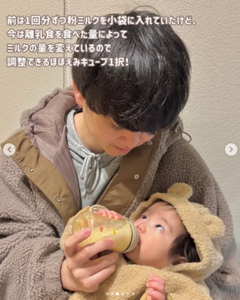 実際にどのように活用することができるのか、液体ミルク『明治ほほえみ らくらくミルク』と、キューブタイプの『明治ほほえみ らくらくキューブ』を使っているインフルエンサーファミリーの投稿を紹介する。