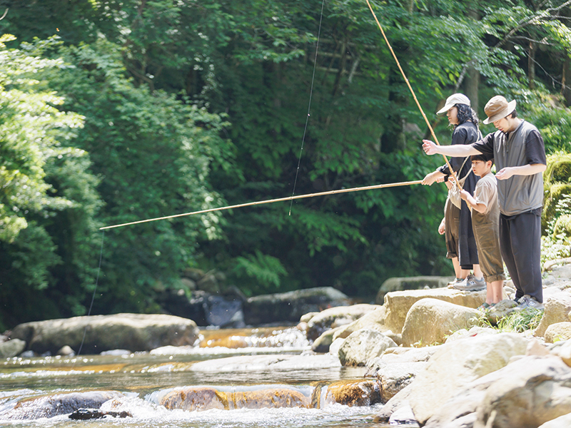 施設すぐそばの渓流にあまごやにじますを放流して渓流釣り体験(1名1900円)。