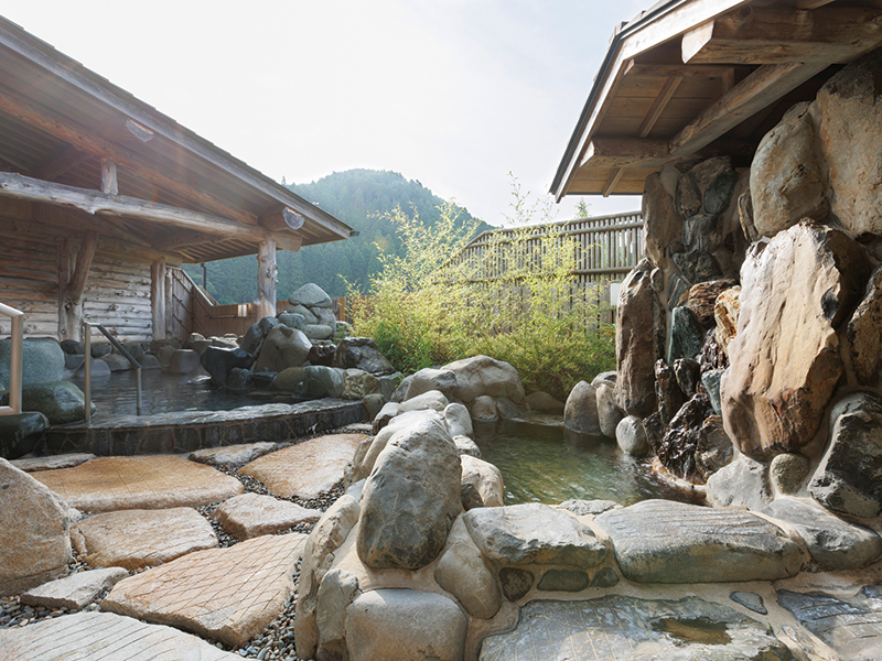 バンガローに常設風呂があるほか、近隣の温泉施設では無料あるいは割引で入浴できる。