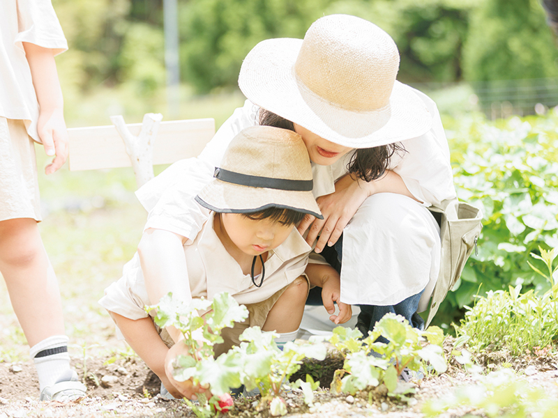 6月〜10月は施設から徒歩5分の畑で野菜の無料収穫体験を実施。収穫した野菜はBBQで食べることもできる。