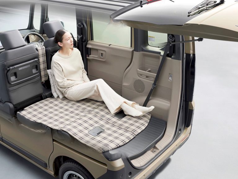 N-BOXの魅力はそのままに、新たなライフスタイルを提案するモデルとして仲間入りしたN-BOX JOY。控えめにギア感がプラスされた外観と、チェック柄のシートがピクニック気分なインテリアが特徴で、後席を倒すだけで広大な「ふらっとテラス」が生まれる。、撥水加工で汚れにも強いフロアは、子どもやペットと過ごす日常使いにもおすすめだ。