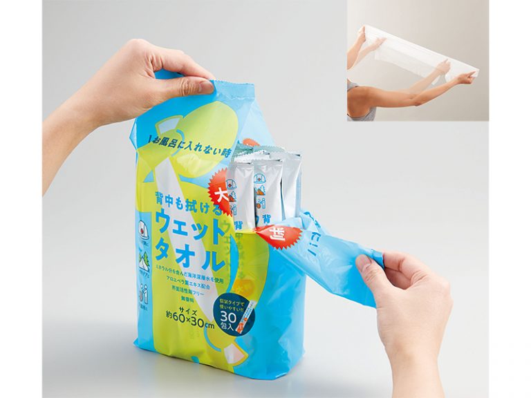 背中も拭ける大判ウェットタオル