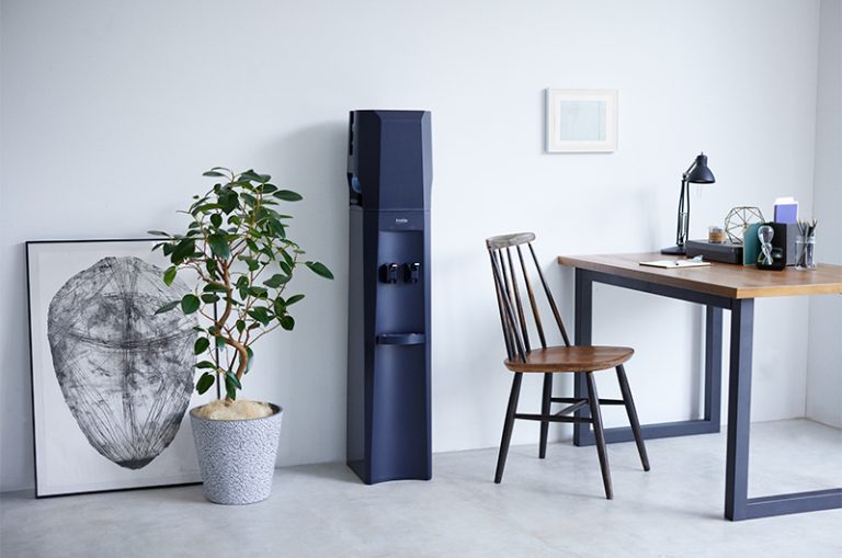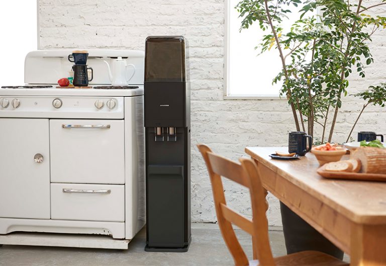 宇宙開発の現場でも利用されている最先端の技術、逆浸透膜(RO膜)システムを採用し、不純物や雑味を徹底的に取り除いた「ROミネラルウォーター」を提供。ボトルは環境に配慮したリターナブル式で、使用後の回収と再利用が可能だ。サーバーレンタル代や宅配料が無料なため、初期費用を抑えられる。さらに、転倒防止のワイヤーが標準搭載されており、停電時にもコックから常温水を出せるため防災性も高い。