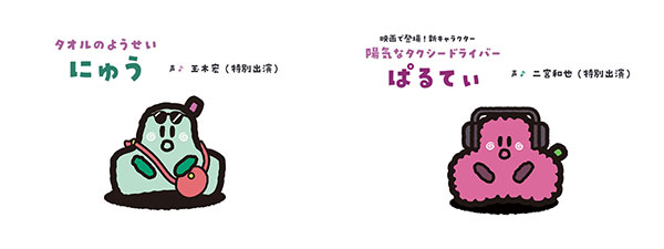 新キャラクターの陽気なタクシードライバー「ぱるてぃ」を二宮和也(特別出演)が演じ、さらに前作から引き続きタオルのようせい「にゅう」を玉木宏(特別出演)が演じるなど、キャスティングにもオリジナリティが溢れる。おなじみの歌や仲間も多数登場するからレギュラー放送ファンも大満足。子どもと一緒に大人も楽しめる!