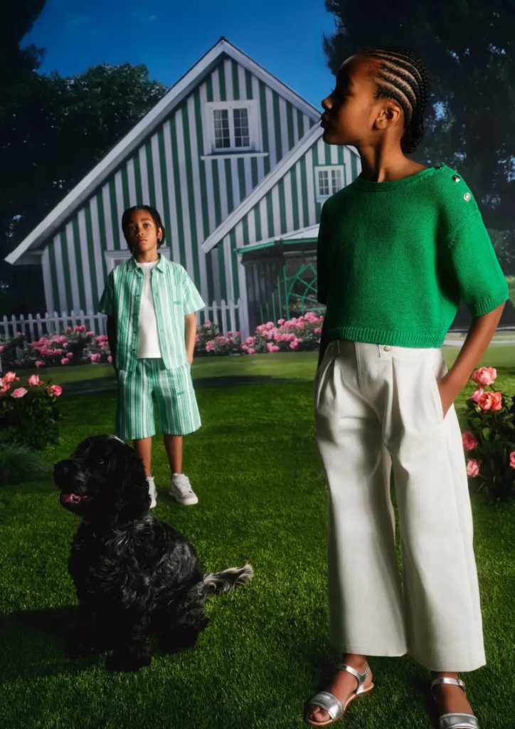 上の画像ではディオールにとってかけがえのない自然の美しさを描き出しながら、森の中でのひとときの休息を連想させる。クローバー、花々、ストライプが、繊細なグリーンのパレットで彩られた優美なアイテムを飾っているのだ。