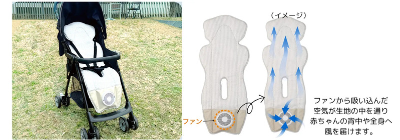 1.ベビーカーを快適に!ファン付ベビーカーシート
