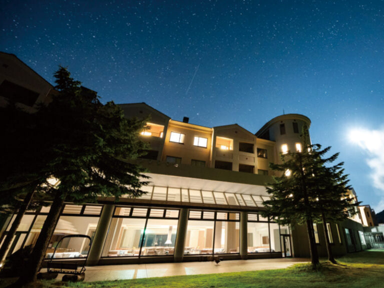 天然の小野川湧水と、ブナの森に囲まれたマウンテンリゾート。滝へのトレッキングツアーや名勝地「五色沼」のガイドツアー、ゆったり五感で楽しむ朝さんぽや焚火でのマシュマロ焼き体験など、自然に親しめる体験が豊富。