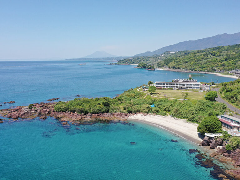 学校に泊まるドキドキ感を味わえる、日本一海に近い小学校をリノベーションした体験型宿泊施設。桜島や開聞岳を眺めながら親子でSUPやカヤック、磯遊びの他、校庭でのキャンプやオーシャンビューサウナも楽しめる。