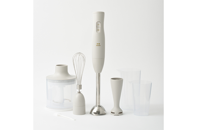 1台で、つぶす・混ぜる・刻む・砕く・泡立てるの5役をこなすBRUNOの「マルチスティックブレンダー2」と、少量の離乳食作りに最適なベビーブレード&カップがセットに。離乳食初期に多いペーストレシピも片手で簡単&なめらか食感に仕上がる。チョッパーボトル&ブレンダーカップは電子レンジ対応なので、下ごしらえから加熱調理まで洗い物を増やさず後片づけもラクラク。ブレンダースティックやホイッパーは、付属のカップに洗剤を入れて動作するだけで汚れが落とせるなど、手入れの手軽さも魅力だ。