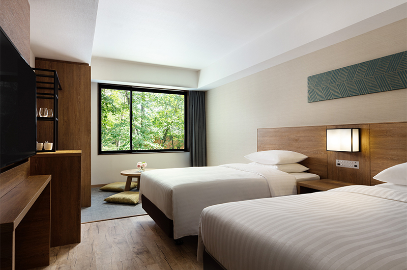 日本有数のマウンテンリゾート・白馬村。北アルプスの雄大な大自然に抱かれた高原リゾート地で唯一の外資系ホテルがこの「コートヤード・バイ・マリオット 白馬」だ。温泉付プレミアルームや和洋ルームなどゆったり寛げる客室や温泉大浴場があり、大人は疲れを癒やすのに絶好の環境。