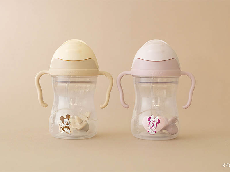 オーストラリア発のベビー・キッズブランド「b.box」で人気のストローマグ「シッピーカップ」。カップを傾けても中身がしっかり飲めるおもり付きストローや、逆流を防ぐ弁付きの飲み口など、赤ちゃんが自分で飲む楽しさを味わえるような設計が魅力だ。全パーツが分解可能&食洗機対応なので、お手入れも簡単。今秋新登場の、くすみカラーのミッキーマウス&ミニーマウスデザインを4名様に。※柄は選べません。