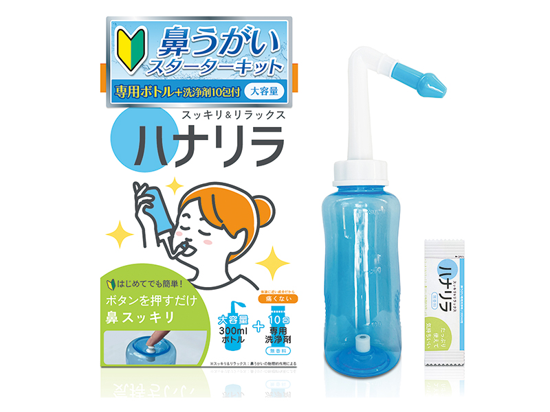 鼻うがい専用ボトル ハナリラ 300mL大容量ボトル+洗浄剤 10 回分セット
