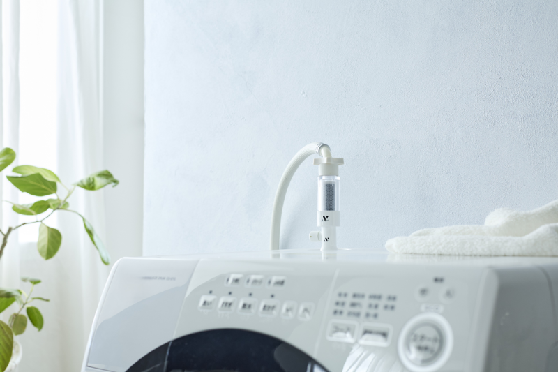 取り付けはとても簡単。洗濯機の給水ホースを外し、給水口にアダプターをくるくると取り付け、アダプター上部にホースを戻すだけ。ドラム式・縦型洗濯機の双方に対応しており、特別な工事は不要だ(※二槽式は非対応)。今使っている洗濯機を、手軽にアップデートすることができる。