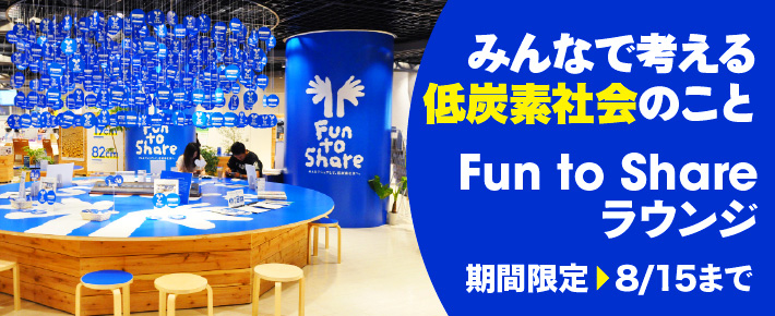 地球温暖化防止のために、今年新たにスタートした気候変動キャンペーン「Fun to Share」。豊かな低炭素社会づくりに向けた知恵や技術を、文字通り「Share(共有する)」ためのユニークなラウンジが、東京駅前の新しいトレンドスポットJPタワー「KITTE」の地下1階「Tokyo City i」に期間限定でオープン中だ(開催期間8月4日〜8月15日まで)。