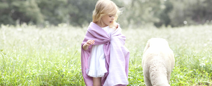 肌触りから温度調節、快眠にいたるまで……ベビーの快適さを極限まで追求したメリノウール100%モスリン製品。そのこだわりは、言葉では語りつくせないほど。一度触れれば、きっとその違いがわかるはずだ。