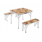 - ナチュラルモザイク™ ファミリーリビングセット/ミニ。コンパクト設計で持ち運びが簡単な4人用テーブル&ベンチセット。紅葉とマッチする可愛いデザインで、秋キャンプにオススメ。