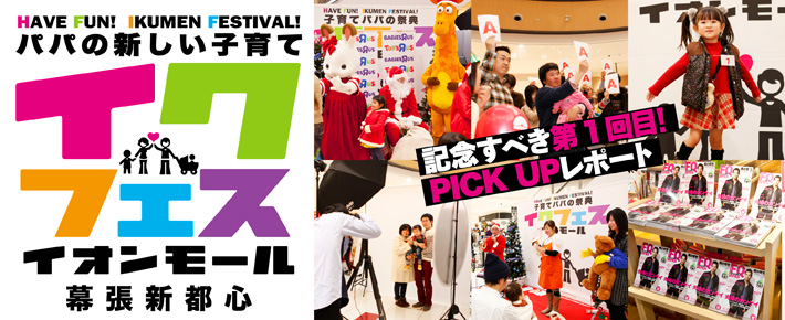 毎年東京ビッグサイトで開催される、イクメンのための祭典「イクフェス」のスピンオフ展開が決定!! なんと、ショッピングや食事を家族みんなで楽しめる“あの”イオンモールとのコラボレーション開催が実現した!記念すべき第1回は、クリスマス目前の2014年12月20日(土)から12月21日(日)、「イオンモール幕張新都心」(千葉県千葉市美浜区豊砂1-1)にて開催。