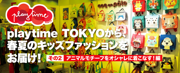 パリ、ニューヨーク、東京の3大都市でおこなわれる、子供とマタニティーのためのインターナショナルな合同展示会「playtime(プレイタイム)」。現在、東京・ベルサール渋谷ガーデンでは2015年秋・冬のコレクションが展示されているが、今回は先日の展示会から、いま揃えておきたい2015年の春夏コレクションを紹介。