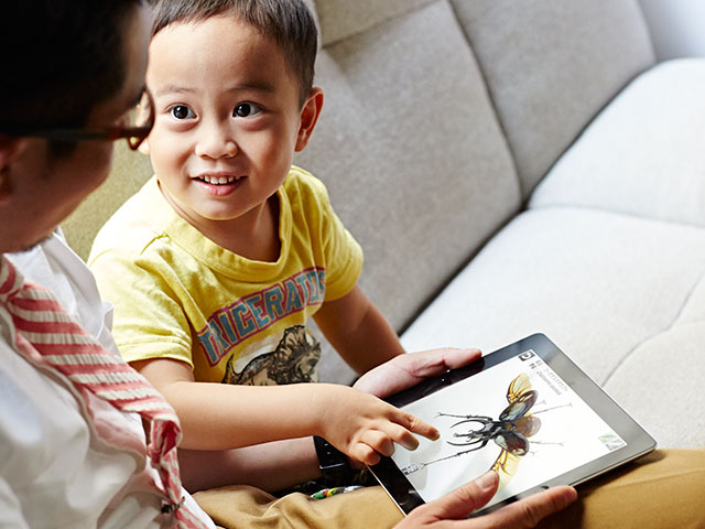 世界の秘境に生息する人気の昆虫たちを、まるで手にとるように3Dで観察できる進化系図鑑「The3D昆虫」。昆虫が好きな父子のコミュニケーションに一役買うアプリだ。