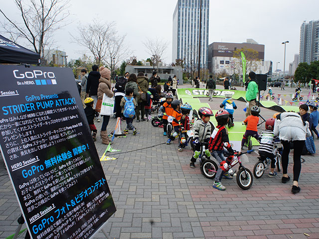 2015年11月22日、スポーツやアウトドアなどアクティブなシーンでの撮影にぴったりなアクションカメラGoProが、2歳から乗ることのできる大人気のランニングバイクSTRIDERとのコラボイベント「STRIDER PUMP ATTACK Presented by GoPro」を開催した。