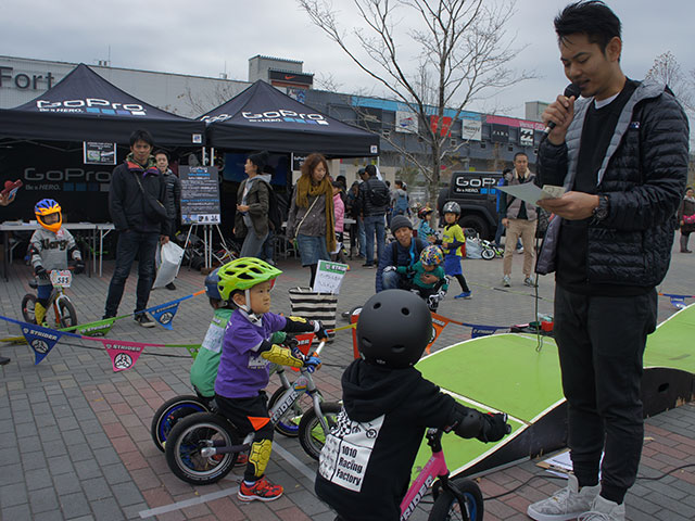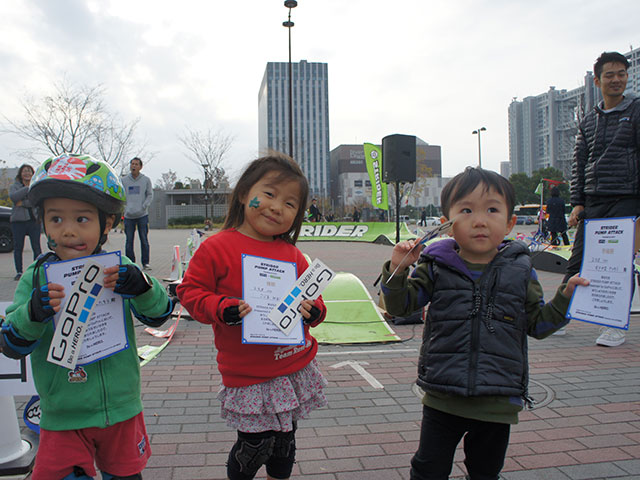 パンプコースでは、午前と午後の2回、タイムトライアルイベントが行われ、合計で60名のストライダーキッズが参加。パンプコースでの最速ストライダーキッズを決める熱いバトルが繰り広げられた。タイムトライアルの上位3名には、表彰状とGoProステッカーが贈呈された他、参加者60名の中から抽選で2名に「GoPro HERO+ LCD」が贈られるなど、会場は大いに盛り上がっていた。