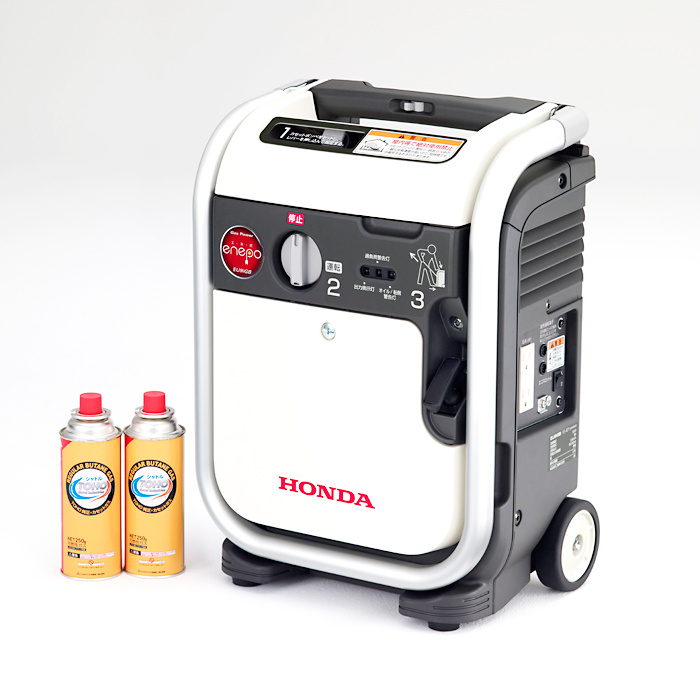初めてでもカンタンに使う事ができる、カセットボンベを使用する発電機。キャンプなどのレジャーはもちろん、電動工具を使った日曜大工やクルマのメンテナンス、災害時の非常電源としても活躍します!