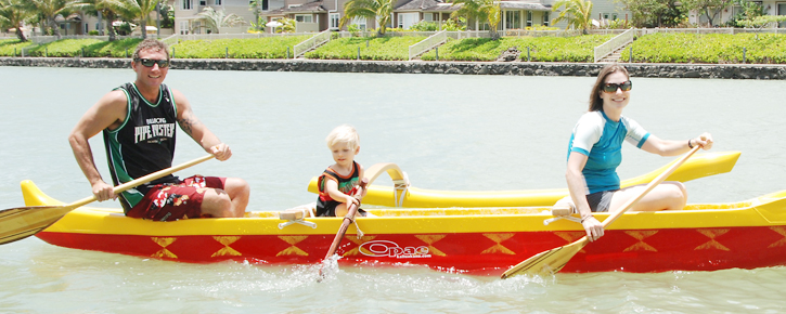 『仕事より家族優先』という風潮のあるハワイ。ルークさんの会社も勤務時間がフレックス制で、朝8時に出勤すると夕方4時には終了。そこから帰宅してカイノア君と海で遊ぶ、という生活を送っている。サーフィンの他にもカヌーに乗ったり、スピアフィッシングや魚釣りをしながら、ハワイ語を教えたり、クラゲを触ってみたりと、父子でマリンアクティビティを楽しむ。その間、妻のメラニーさんは家事などをしながら家で自分1人の時間を過ごしている。