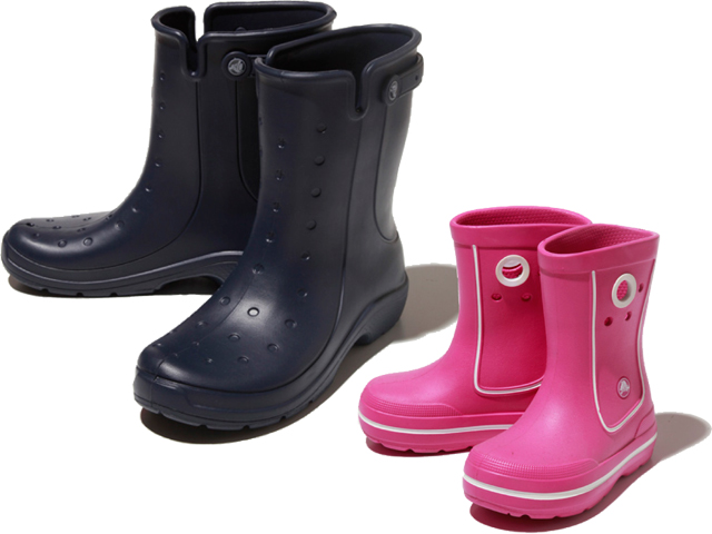 梅雨のシーズンに活躍するのが、クロックスのレインブーツ。軽くて靴底が滑りにくく、快適な履き心地。