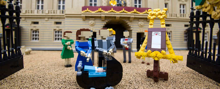 ※写真は、ウィンザー城のお膝元にあるレゴランドでのオブジェ。レゴ製バッキンガム宮殿前には、ジョージ王子を含めた英ロイヤルファミリーがレゴで登場し、ロイヤルベビー誕生を祝う。