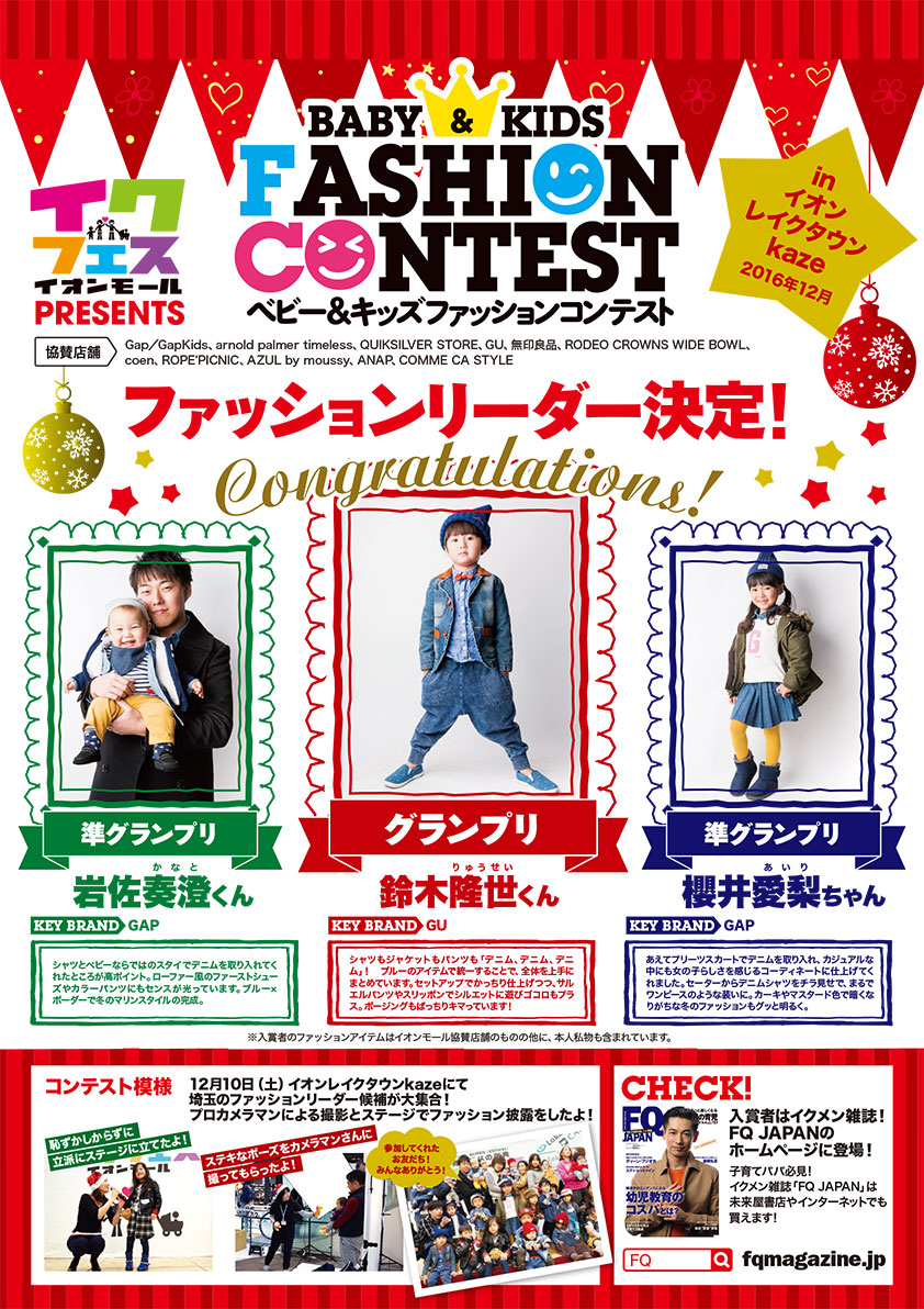 12/10(土)開催「ベビー&キッズファッションコンテストinイオンレイクタウンkaze」のグランプリ&準グランプリを発表! 今回のテーマは『デニムコーデ』。