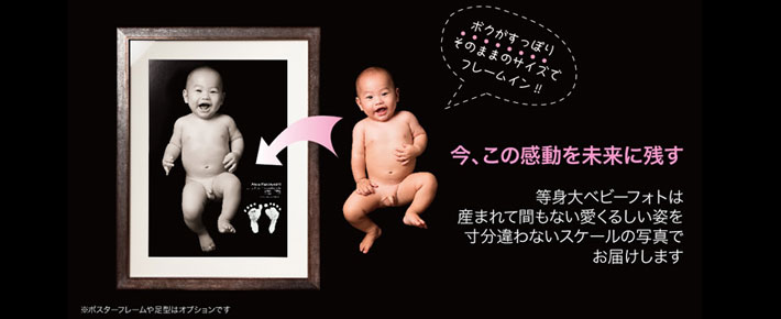 ベビーの寸分違わない等身大の写真をアート作品にしてお届けするというサービスをご紹介。