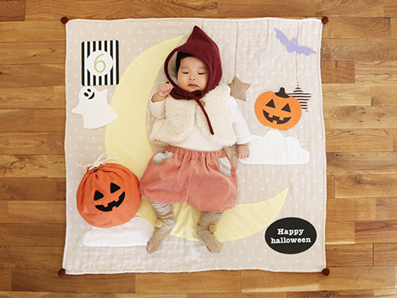 一方で、手間や撮影の仕方が難しいのでは…としり込みするパパママも多いそう。そこで使えるのが、親たちの生の声を収集して作られた、寝かせるだけで誰でも手軽にできるハロウィン寝相アートセット。
