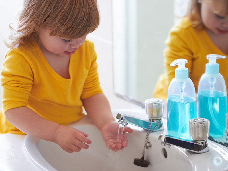 「接触感染とは感染者の触ったところを介して感染すること。例えばパパやママが愛するわが子に触れることで病気をうつしてしまうことがあるのです。接触感染を防ぐにはきちんとした手洗いと殺菌・消毒が大切。これにより、接触感染を最小限に食い止めることができます」。(村松さん)