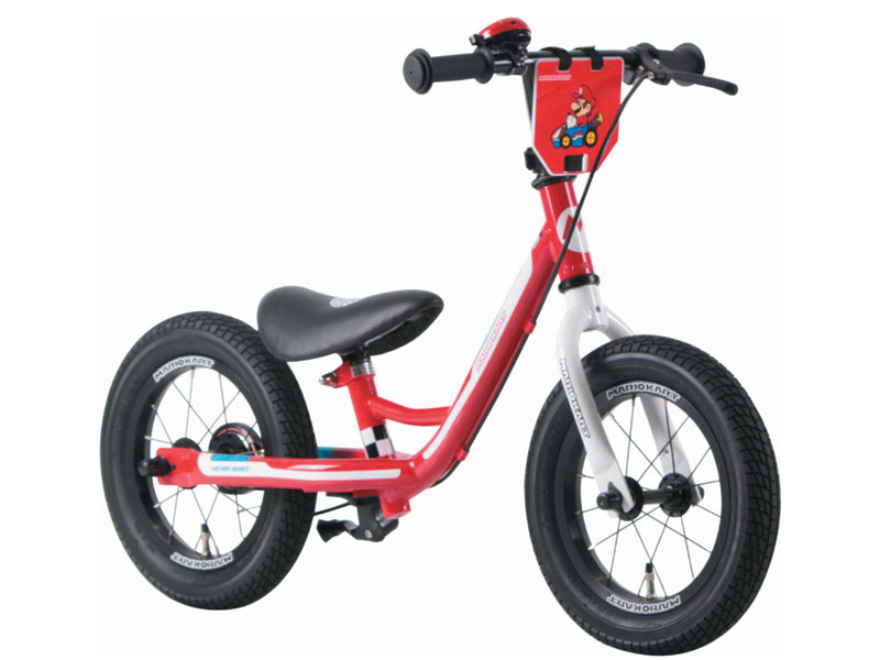 最近、街で見かけるペダルレスのキッズバイク。ヘルメットをかぶり懸命に地面を蹴る子供を見ては、挑戦させてみたいけれど、うちの子にはまだ早いか……と思案中。そんな気持ちに弾みがつく、大人気ゲーム「マリオカート」のバイクが登場だ。